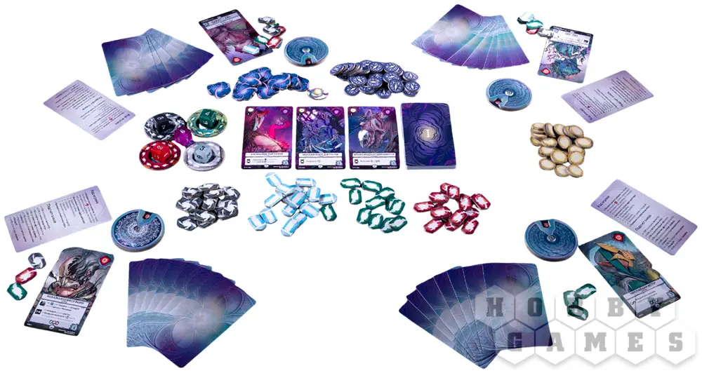 "Эфир-камни" – это карточная игра, в которой вы перевоплощаетесь в вождя, чья воля определяет судьбу целого народа на Нобуре. Партия начинается с драфта 7 карт. В свой ход игрок выполняет одно действие: призывает сущность за эфир-камни, разыгрывая карту из руки; атакует существо в общей области угроз или готовится к атаке; забирает кубик с общего рынка, получая эфир-камни его цвета и, возможно, применяя свойства карт; или заключает сделку с Бездной. Игра будет длиться вплоть до выполнения условия окончания, а когда пыль битвы уляжется, победит не просто сильнейший в схватке, а самый проницательный стратег, сумевший обратить ход игры в победные очки.