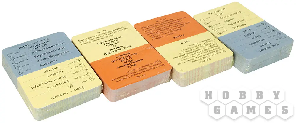 Упомянем некоторые темы наборов слов, которые встретятся вам в этом издании игры: "Кто такой?", "Игры", "Музыка", "Верю-не-верю", "Полный ЗОЖ", "Кино", "Мир ощущений", "Москва", "Среда обитания", "Эмоции", "Минута рекламы", "Взрыв мозга" и другие.