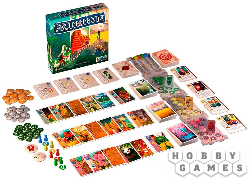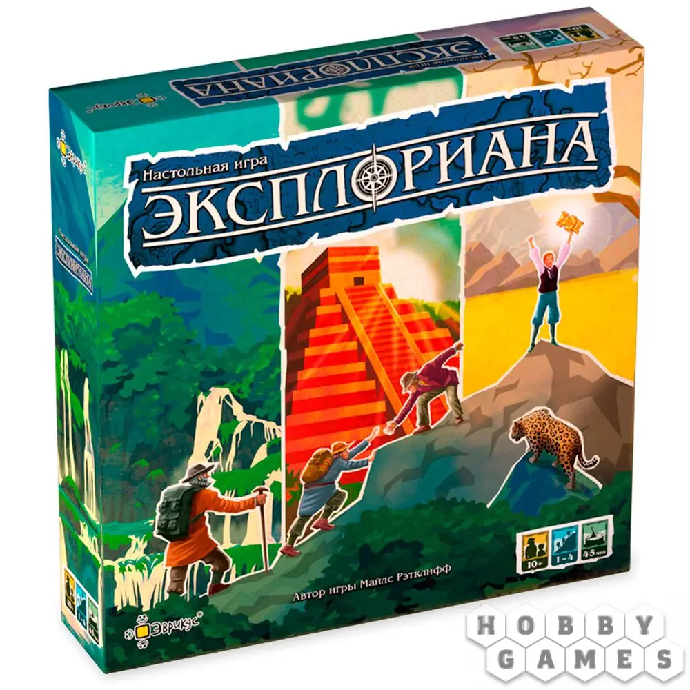"Эксплориана" – это настольная стратегия, в которой игроки возглавят один из научно-исследовательских институтов и будут формировать и отправлять экспедиции в экзотические страны. Такие экспедиции позволяют открывать и исследовать новые виды растений и животных, а также заполнить географические карты точными данными. Но экспедиция – это не безопасная прогулка за городом, и успех ждёт лишь самых упорных, тех, кто готов выдержать опасные и сложные испытания. Африка, Азия и Америка ждут вас!