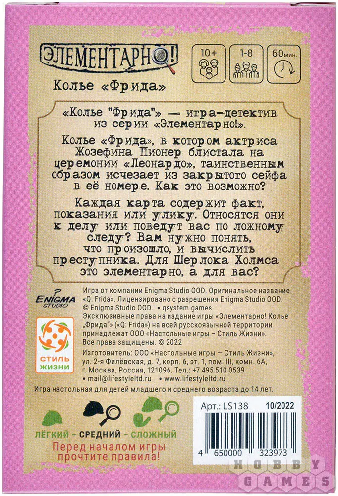 Колье "Фрида" – искусное произведение ювелирного мастера, способное затмить собой любое другое украшение. Этим колье владеет актриса Жозефина Пионер: ах, как много взглядов она приковала к себе, блистая в нём на церемонии вручения премии "Леонардо"! Бесспорно, вещица очень привлекательная, и любой уважающий себя коллекционер хотел бы иметь подобный экспонат в своих закромах. И, кажется, кому-то всё-таки удалось им обзавестись: при таинственных обстоятельствах колье исчезло из запертого сейфа в номере Жозефины. Чьи цепкие руки смогли дотянуться до драгоценности?