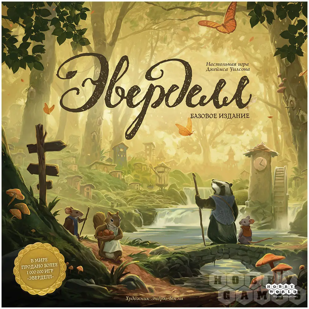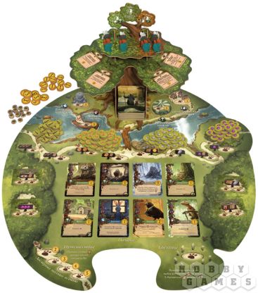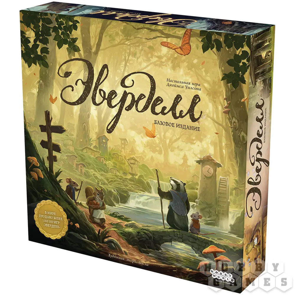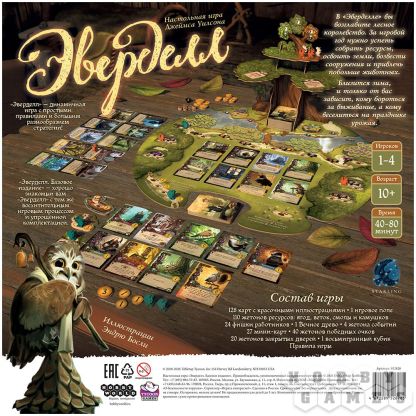 "Эверделл" – это волшебная настольная игра для 1-4 игроков и само воплощение тепла и уюта. Действие игры происходит в сказочном мире, где животные разговаривают и дружно живут вместе в лесных городах. Прежде всего, игра удивит Вас своим очаровательным дизайном игрового поля и компонентов, в которых используются мягкие и приятные цвета. Во главе игрового поля стоит настоящее дерево, которое нужно будет собрать по инструкции из картонных элементов. Дерево не просто выполняет декоративную функцию – на его ветвях располагаются карты и фигурки.