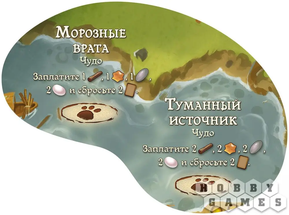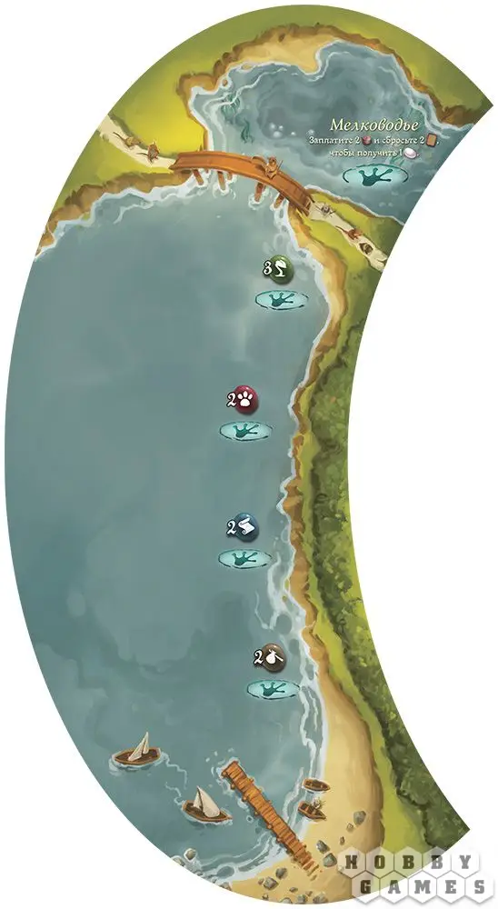 Дополнение "Жемчужный ручей" не только добавляет в игру новые карты, фишки жемчужин и новых обитателей – лягушек и выдр, но и повышает сложность игры в целом.