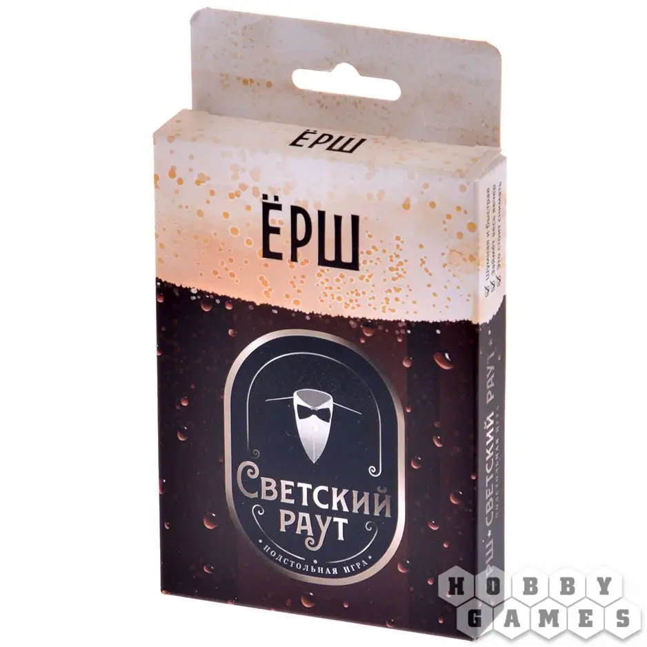 «Ёрш. Светский раут» — новое издание популярной игры «Ёрш». На этот раз вам нужно играть в барах и ресторанах. Потому что в игру иногда вовлекаются официанты, гости за другими столиками, даже шеф-повар! Например, вам попадется задание «Сделайте селфи с чужой компанией, как будто это рок-звезды». Или «Уговорите шеф-повара прийти, и всей компанией выразите ему почтение». Не готовы за такое браться? Пейте штрафную, сэр!