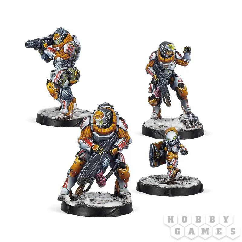 В этом наборе четыре миниатюры: один сержант Sergeant So-ra Kwon с комбинированной Rifle и тяжёлым Flamethrower, один Jujak с разрушительным Missile Launcher, один Jujak с оружием Spitfire и один TinBot. Эти крепкие бойцы тяжёлой пехоты обеспечат вашей армии мощный огневой потенциал за крайне дешёвую стоимость.