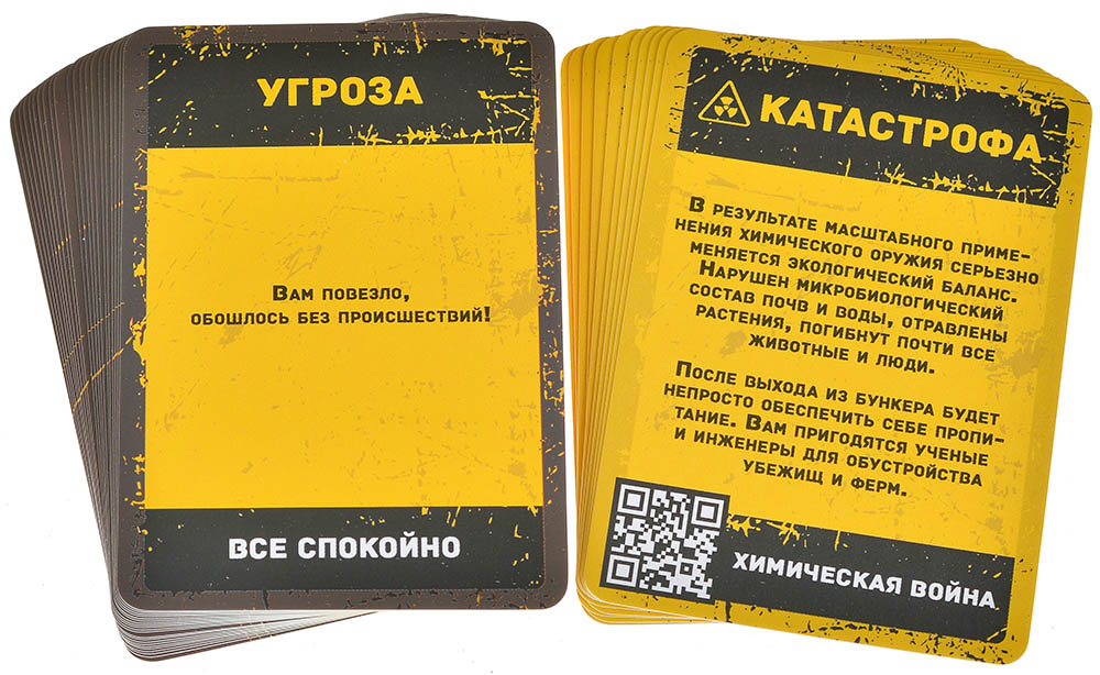 Перед вами великая классика любой вечеринки – ожесточённые словесные баталии в компании 4-16 человек, где каждый пытается доказать, что именно он достоин спасения! Получите колоду случайных карточек характеристик и используйте всё своё красноречие, чтобы обеспечить себе проход в бункер. Не получилось? Тогда придётся встретиться с последствиями апокалипсиса, который уже в самом разгаре... Убедитесь, что всем игрокам больше 18 лет, и проведите следующие 30-60 минут весело!