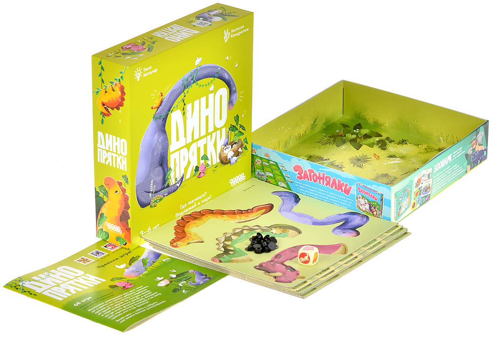 Помогите мамам-динозаврам найти своих малышей-динозавриков после целого дня увлекательных игр! Перед вами добрая и простая игра на память и внимание. Яркие персонажи, короткие партии, которые длятся всего 10-15 минут, и весёлый процесс понравятся детям и их родителям, а самое главное – помогут развить наблюдательность и смекалку и привьют любовь к настольным играм с самого детства (с трёх лет)! Собирайтесь компанией 2-5 человек и играйте!