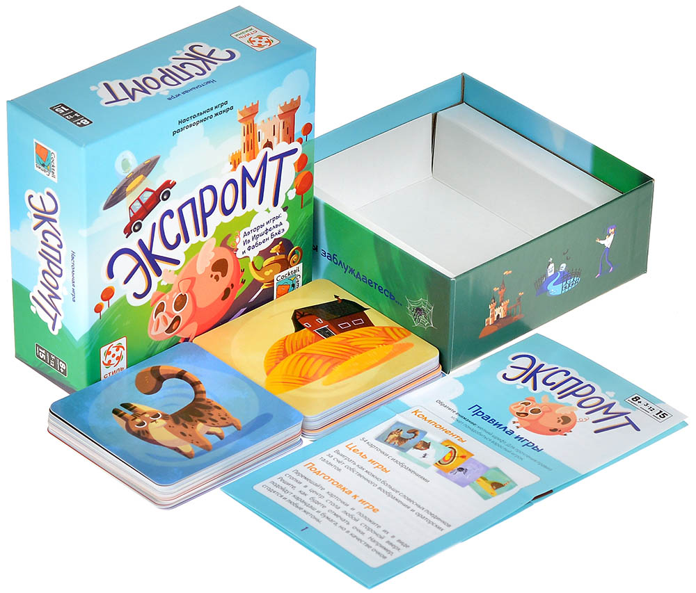 Лучшая настольная игра – та, которая сплочает игроков. Как? Ну, например, с помощью словесных импровизаций! Именно этим вы и будете заниматься в "Экспромте" – сочинять истории, вести дебаты и шутить, вдохновляясь яркими картами и изображёнными на них картинками. Развивайте воображение и красноречие в кругу семьи! Сыграть смогут от 3 до 12 человек старше 8 лет, партии длятся около 15 минут.