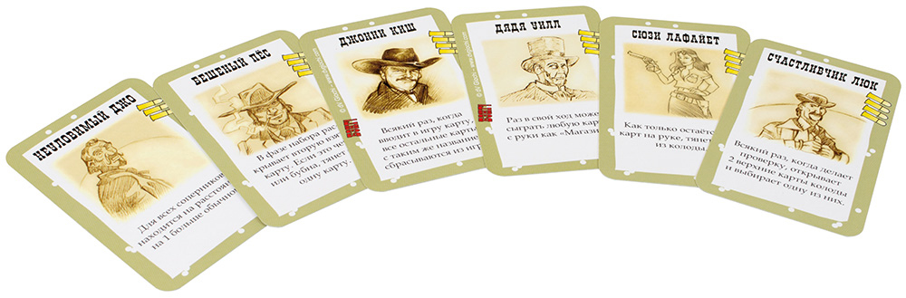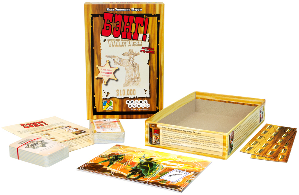 Кто вы – благородный шериф или коварный бандит? Какая бы вам ни досталась роль, именно ваши действия определят судьбу Дикого Запада. Ищите предателей, разгадывайте чужие планы и устраивайте лихие перестрелки! Эта азартная карточная игра с простыми правилами – прекрасный вариант для каждого, кто хочет легко и весело погрузиться в мир настолок. Будет актуальна для 4-7 человек старше 12 и рассчитана на партии по 20-40 минут.