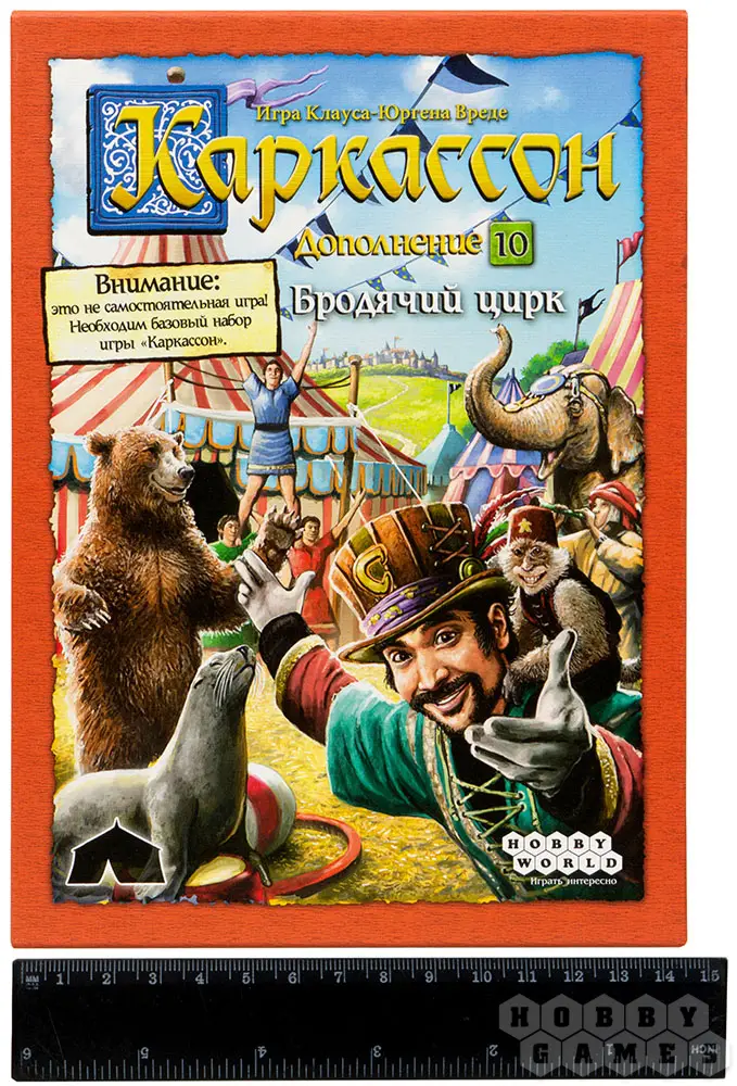 "Каркассон: Бродячий цирк" – десятое дополнение для легендарной настольной игры. Вас ожидают все необходимые компоненты для организации запоминающихся и любимых публикой цирковых представлений. Поставьте палаточный лагерь и выпускайте на арену дрессированных животных. Нанимайте мастеровитых и талантливых акробатов, способных творить невероятные чудеса в воздухе. Заручитесь поддержкой парочки толковых директоров, которые смогут эффективно руководить труппой. Это предприятие обязательно принесёт вам славу и богатство, а каждый запоминающийся цирковой номер в конце игры будет приравниваться к дополнительным победным очкам!