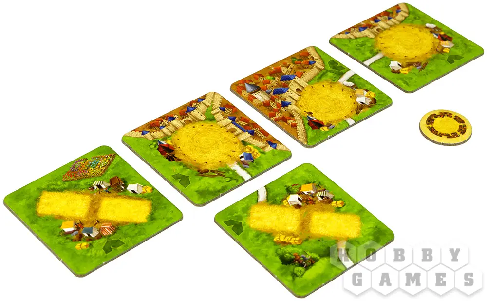В "Каркассоне" действия игроков предельно просты. В свой ход игрок должен взять картонный квадрат с участком средневекового ландшафта и выложить его на стол к уже выложенным квадратам по принципу домино. Новый квадрат должен продолжать уже существующую картину мира – дорога смыкается с дорогой, пастбище с пастбищем, городская стена – с другим её участком. Когда благодаря размещению квадрата на столе возникает новый объект (например, дорога отходит в сторону от перекрёстка), игрок, выложивший этот квадрат, может застолбить этот объект за собой. Для этого он должен взять одну деревянную фигурку из своего резерва и поставить её на квадрат.