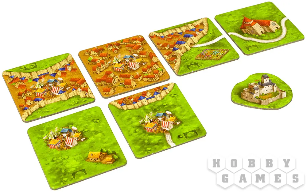 В "Каркассоне" действия игроков предельно просты. В свой ход игрок должен взять картонный квадрат с участком средневекового ландшафта и выложить его на стол к уже выложенным квадратам по принципу домино. Новый квадрат должен продолжать уже существующую картину мира – дорога смыкается с дорогой, пастбище с пастбищем, городская стена – с другим её участком. Когда благодаря размещению квадрата на столе возникает новый объект (например, дорога отходит в сторону от перекрёстка), игрок, выложивший этот квадрат, может застолбить этот объект за собой. Для этого он должен взять одну деревянную фигурку из своего резерва и поставить её на квадрат.