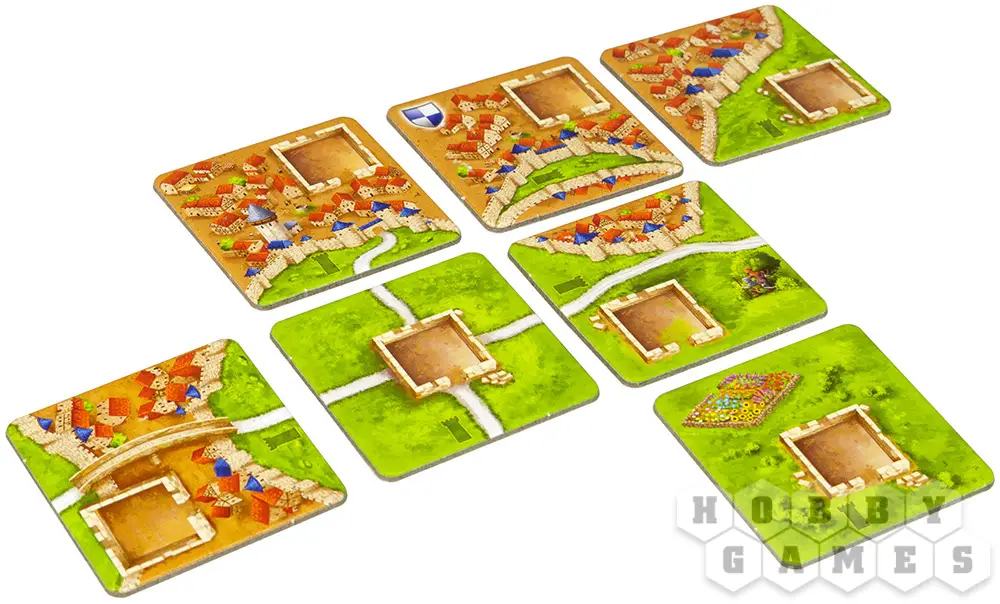В "Каркассоне" действия игроков предельно просты. В свой ход игрок должен взять картонный квадрат с участком средневекового ландшафта и выложить его на стол к уже выложенным квадратам по принципу домино. Новый квадрат должен продолжать уже существующую картину мира – дорога смыкается с дорогой, пастбище с пастбищем, городская стена – с другим её участком. Когда благодаря размещению квадрата на столе возникает новый объект (например, дорога отходит в сторону от перекрёстка), игрок, выложивший этот квадрат, может застолбить этот объект за собой. Для этого он должен взять одну деревянную фигурку из своего резерва и поставить её на квадрат.