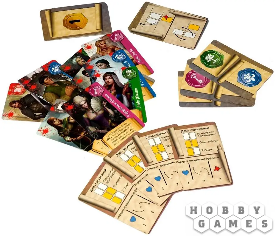 В начале каждой игры участники получают карту с тайной целью, которая говорит о дальнейшей судьбе определённого рода. Вам необходимо следовать указаниям: либо вести семью к захвату власти, либо сделать так, чтобы чей-то род исчез с лица земли. В игре наглядно демонстрируется иерархия влияния: карты выкладываются вертикально, определяя верхний уровень как более успешный. Игрокам следует быть внимательными и хитрыми, так как если другие поймут, кто ваш фаворит, то постараются выкинуть его с поля игры. Станьте интриганом, чтобы построить не только родовой дворец, но и собственную империю!