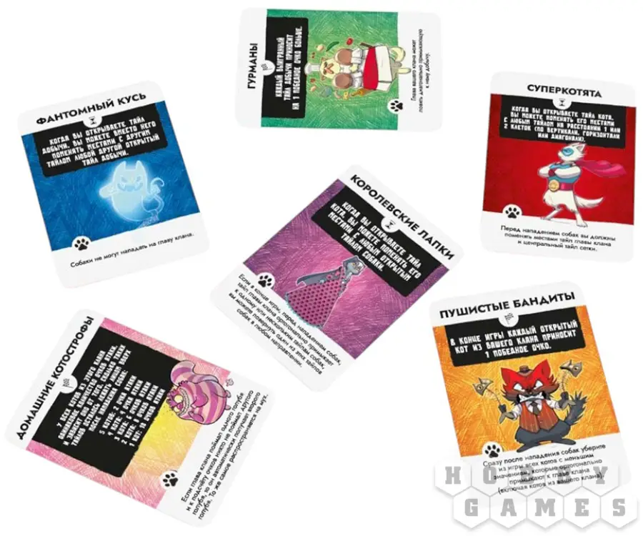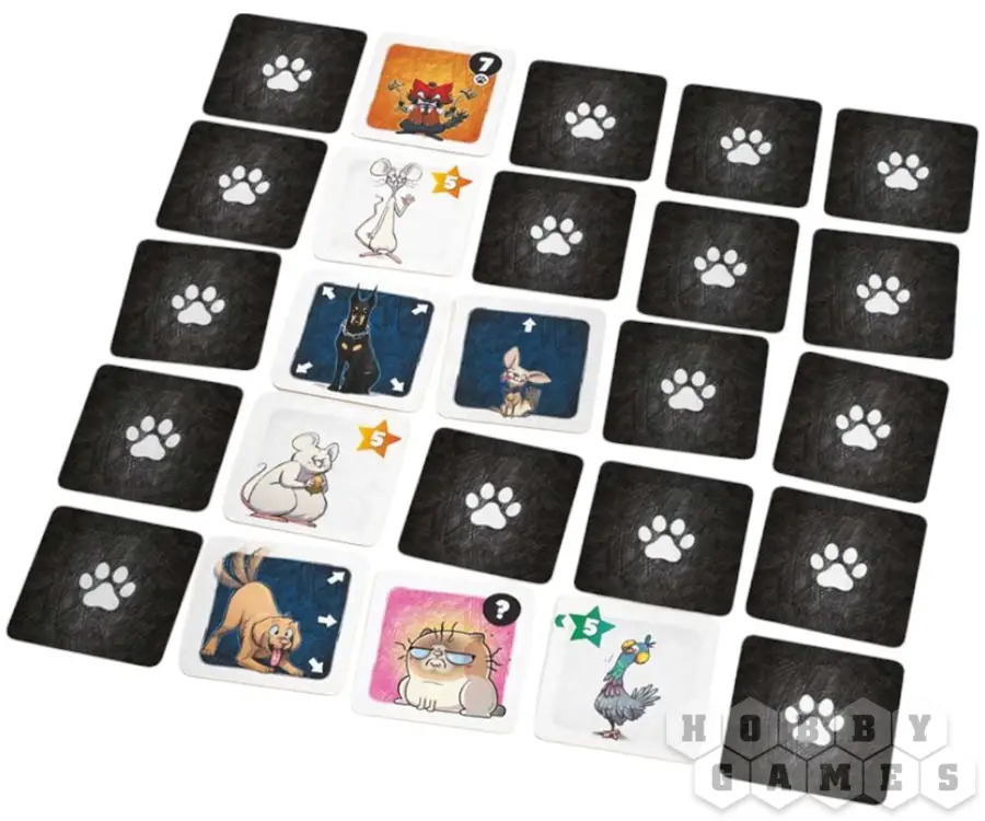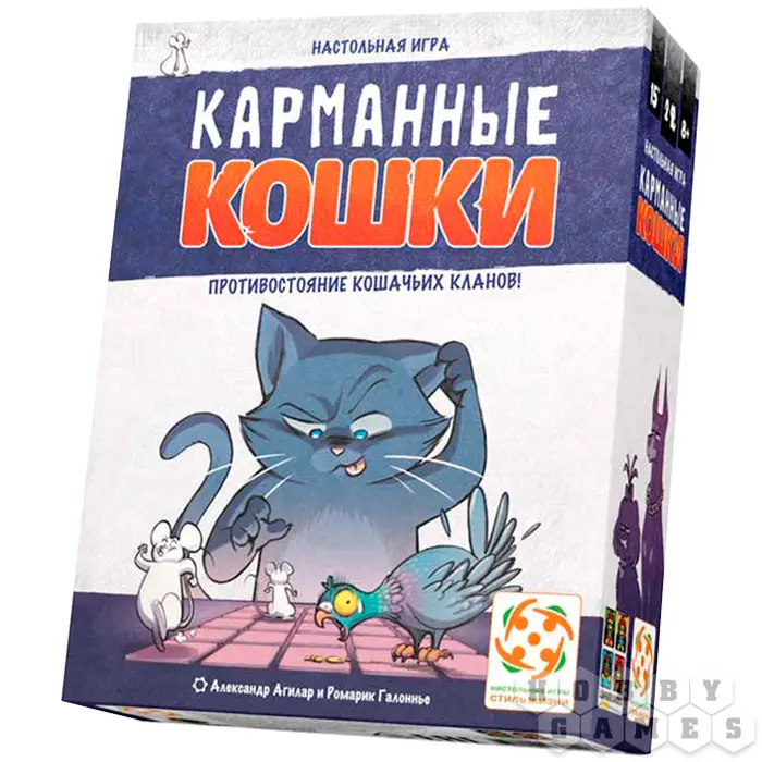 Настольная игра "Карманные кошки" – это простая и увлекательная настольная игра с атмосферой мультика "Том и Джерри". Правила просты: переворачивайте тайлы лицевой стороной вверх и меняйте их местами, чтобы расставлять котов своего клана наиболее выгодным образом. Окружите добычу и поймайте мышку, чтобы забрать её себе. Но остерегайтесь собак!