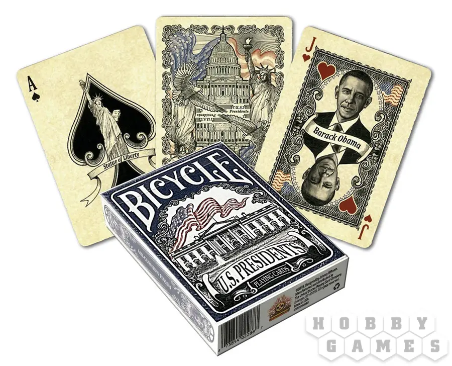 Будет сложно не задумываться над историей США и достижениями прошлых лидеров штатов во время игры этими картами. В игральных картах «Bicycle® U.S» присутствуют все 44 (не включая Дональда Трампа) президента США и 4 первых леди в качестве карточных королев, при этом всё нарисовано вручную. Колода идеально подходит для любителей истории и коллекционеров карт.