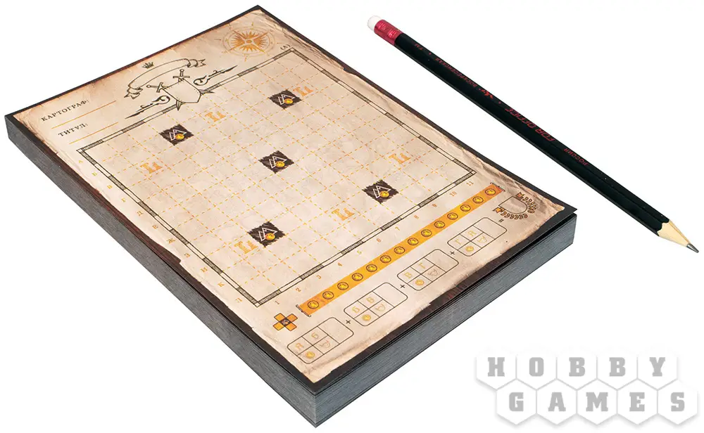 Перед началом игры каждый участник получает в своё распоряжение главный атрибут картографа – планшет, а также карандаш, чтобы красиво оформить сей документ своим именем, титулом, а также, по желанию, фамильным гербом.