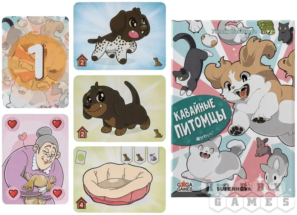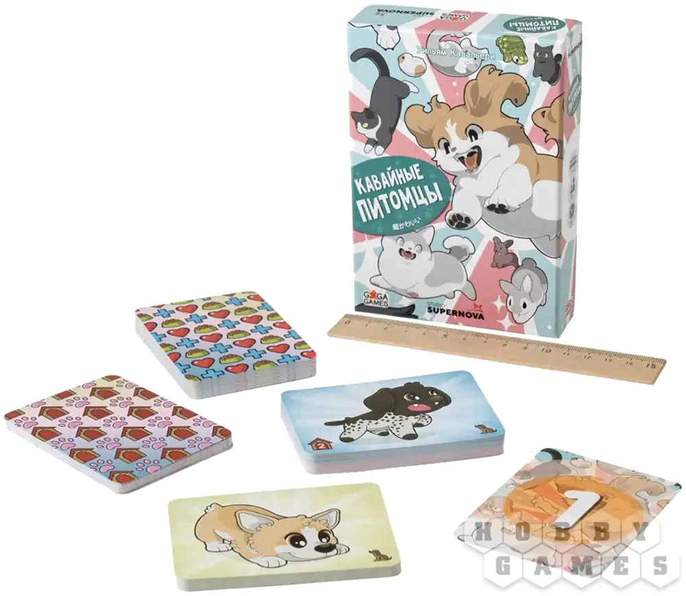 "Кавайные питомцы" – это добрая и простая карточная игра, которая подарит радость игрокам любого возраста. Вам предстоит заботиться о животных, делая их счастливыми и обустраивая для них уютные домики. Грустные котики, щенки, кролики и даже экзотические звери, такие как хамелеон или пони, будут ждать вашей заботы – ведь именно вы будете кормить их, обнимать и любить!