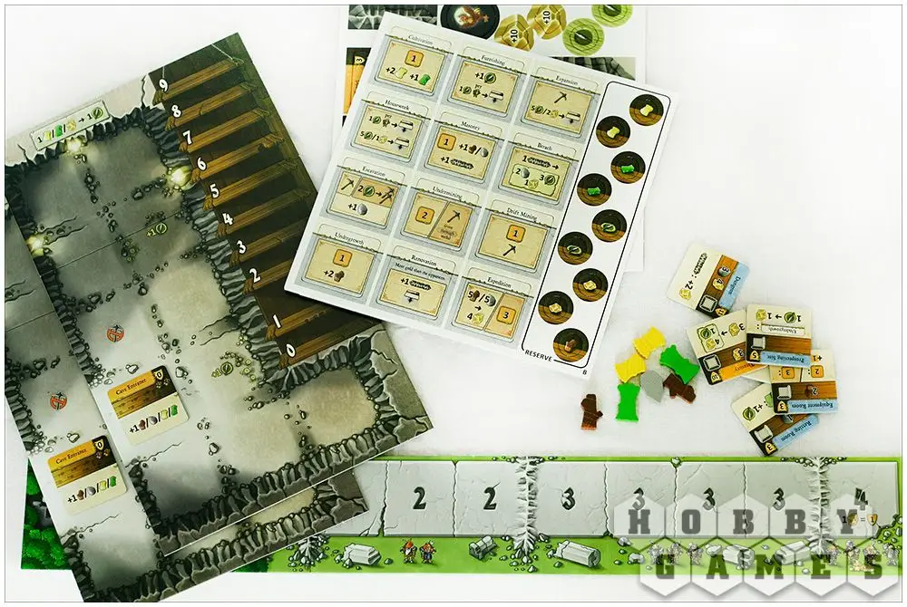 В этой настольной игре участники соревнуются друг с другом, кто из них лучше обустроит свою пещеру. В каждой из пещер живут трудолюбивые гномы, которые выращивают пшеницу и лён, прокладывают в горе туннели, вырубают комнаты, ну, и, конечно, добывают золото!