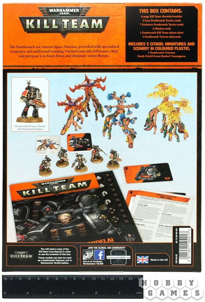 Данный набор является дополнением к игре "Warhammer 40,000: Kill Team" и содержит 5 миниатюр из пластика, элементы декораций (с эксклюзивными правилами) и совершенно новые карты тактик и миссий. Внутри вы найдёте: