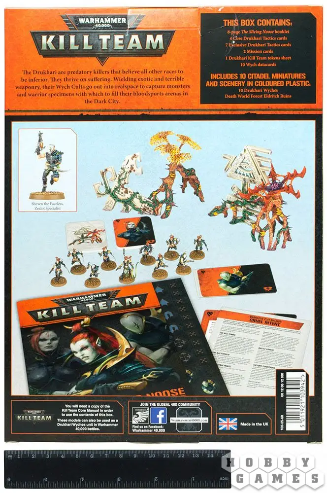 Данный набор является дополнением к игре "Warhammer 40,000: Kill Team" и содержит 10 пластиковых моделей, элементы декораций (с эксклюзивными правилами) и совершенно новые карты тактик и миссий. Внутри вы найдёте: