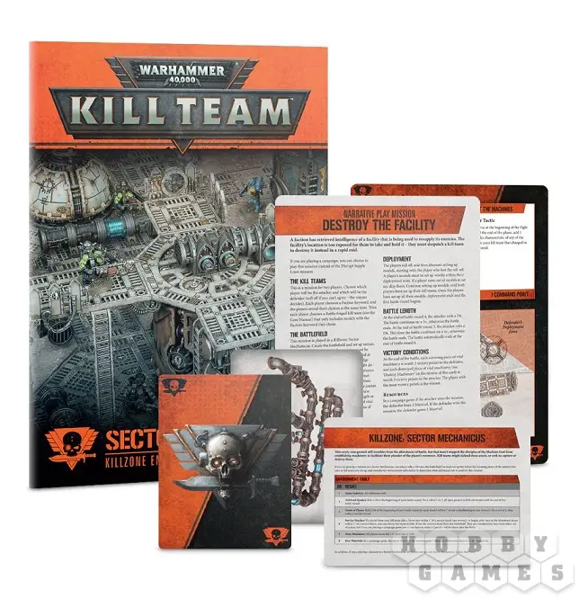 KILLZONE: SECTOR MECHANICUS является расширением для Kill Team - в упакованной коробке вы найдете игровое поле, декорации и эксклюзивные правила, в которых используется уникальная природа ландшафта Sector Mechanicus, чтобы вводить новые опасные миссии и мощные эффекты для ваших игр.