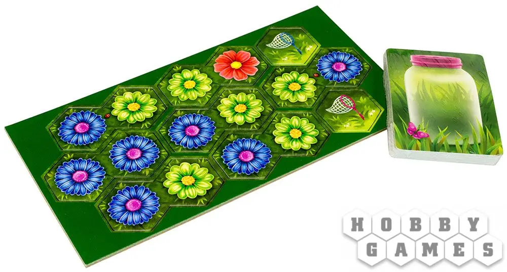 В этой простой семейной игре игрокам предстоит собрать из тайлов цветов разноцветную клумбу, соединяя их друг с другом. На некоторые цветки можно приманить бабочек. Поляны из цветков одного цвета с большим количеством бабочек принесут ещё больше победных очков. Одно "но" – и цветы, и бабочки находятся на общем "рынке". Поэтому нужно будет заранее просчитать свой ход, чтобы создать самую яркую и красивую клумбу.