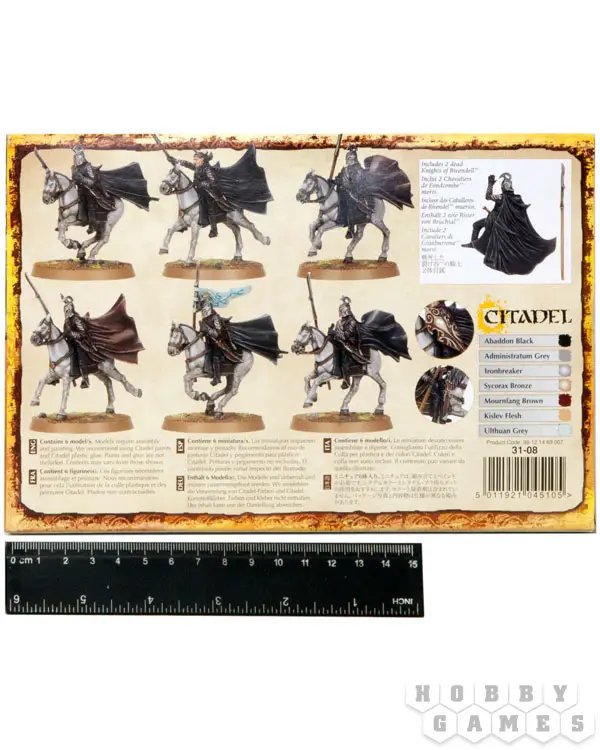 Этот пластиковый набор содержит 54 компонента и шесть круглых подставок. Вы можете собрать шесть рыцарей Ривенделла. Поставляется неокрашенным и требует сборки – мы рекомендуем использовать пластиковый клей и краски Citadel.