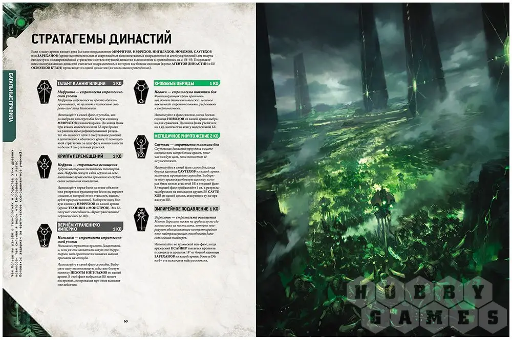 Для полноценного использования правил из Кодекса Некронов вам понадобится основная книга правил Warhammer 40,000 9-й редакции.