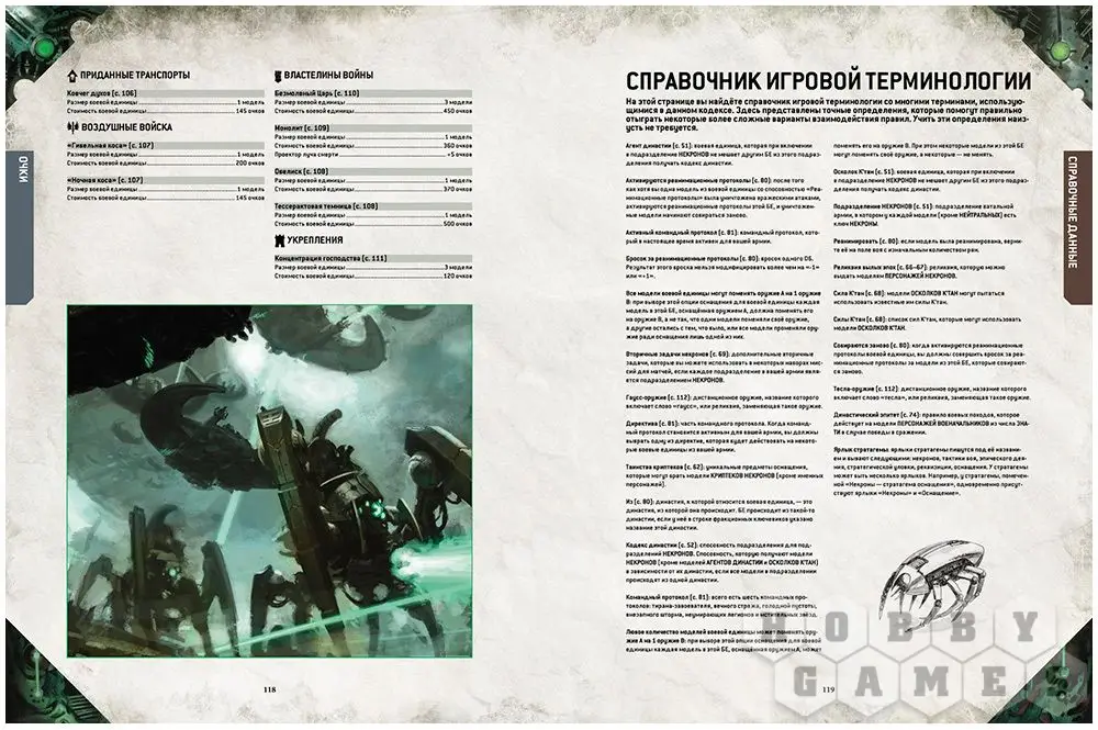 Инфолисты с правилами и характеристиками для всех отрядов, воинов и техники некронов