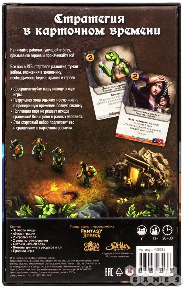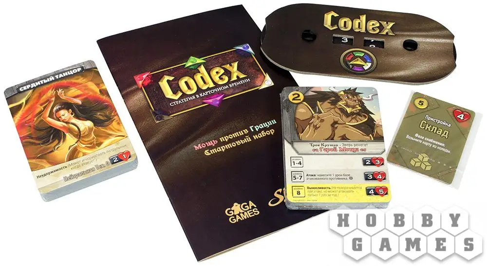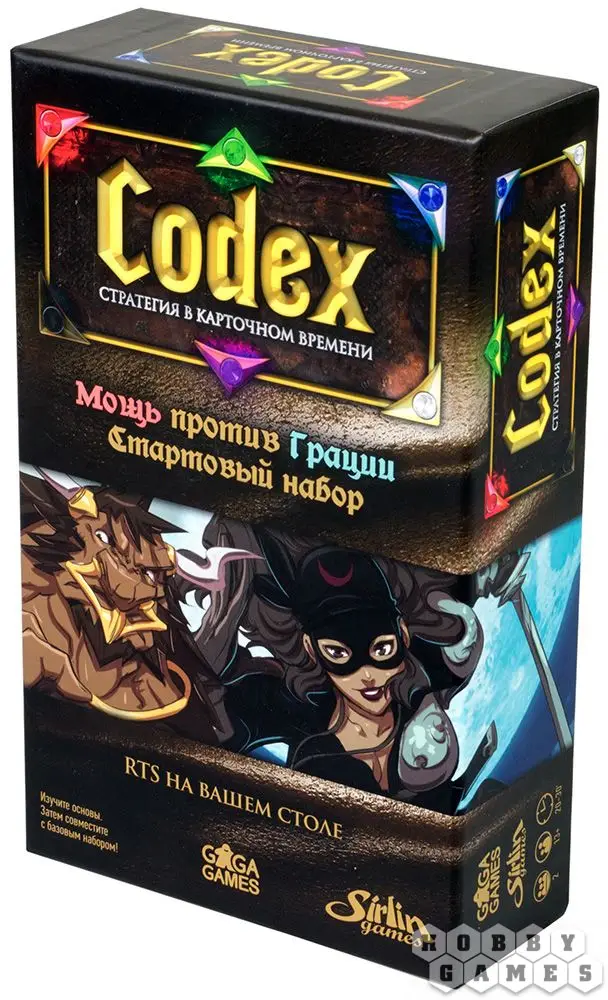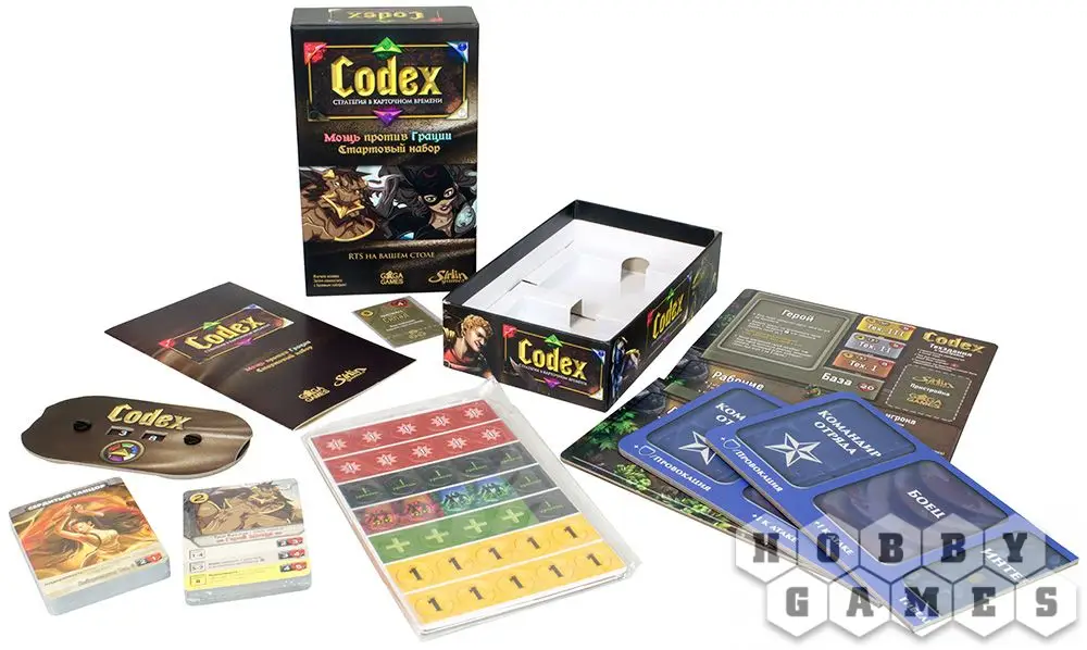 Стартовый набор Codex идеально подходит тем, кто хочет приобщиться к настольным карточным играм с колодостроительной механикой. Этот набор предполагает только дуэльное сражение для двух игроков, но при этом обучит Вас главным правилам и техникам основной версии Codex. Ваша задача – уничтожить базу противника, сохранив при этом свою. Выбирайте своего героя – в игре доступны два нейтральных персонажа, не принадлежащих ни к одной из фракций Codex. Кто Вам ближе – Трок Крушак, герой Мощи или же Ривер Монтойя, герой Грации?