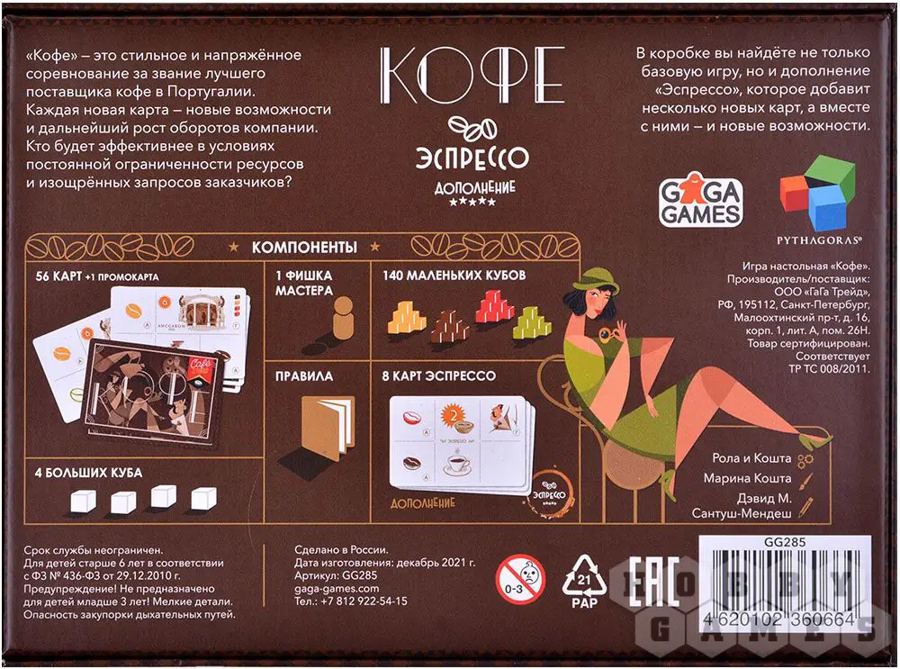В ходе игры вы будете выставлять и комбинировать карточки таким образом, чтобы создать наиболее эффективную цепочку действий. Выкладывая карточки друг на друга, игроки формируют производство и логистику кофе. А тот, кто распространит свою продукцию наиболее эффективно, побеждает в игре!