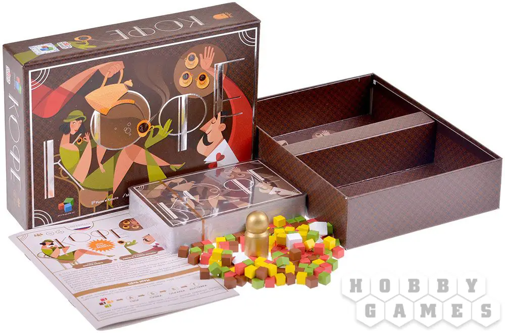 В игре "Кофе" вам предстоит управлять компаниями, занимающимися выращиванием и поставками столь желанного напитка. Игровой процесс отражает все основные процессы, через которые проходят зёрна кофе: сбор, сушку, обжарку и доставку. Соревнуясь с другими игроками за лидерство в кофейной промышленности, вам придётся отправлять товары в разные города и оптимизировать производственные процессы – но всё это в абстрактной карточной форме!