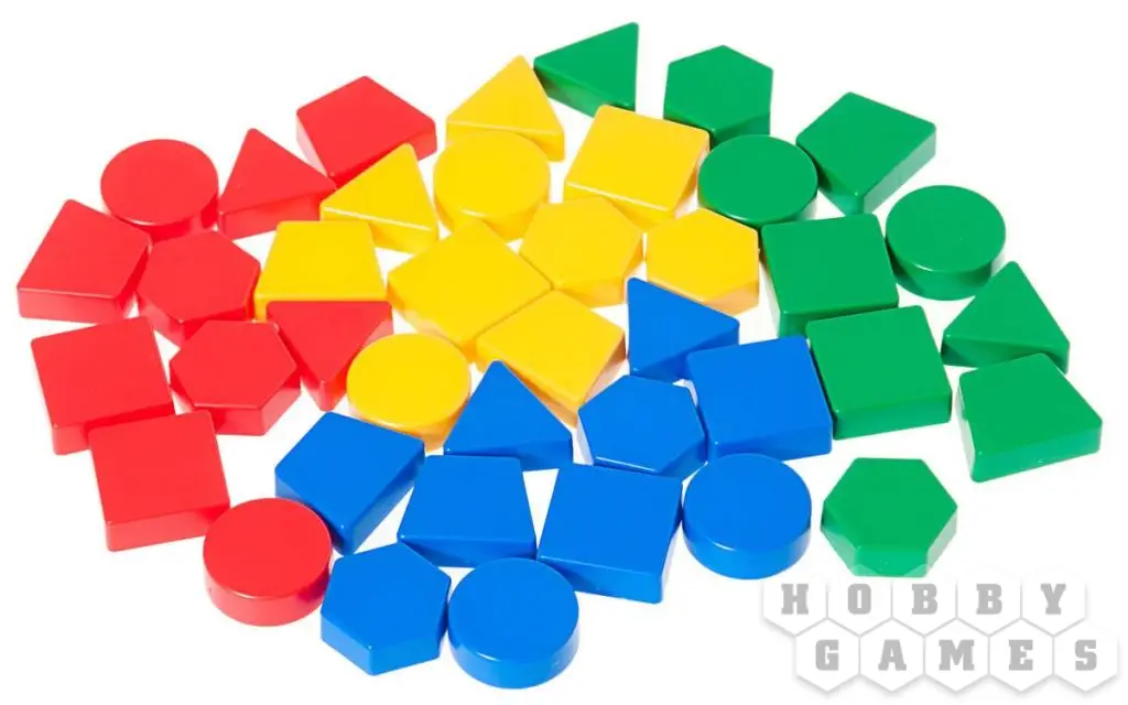 Игра имеет три уровня сложности для детей разного возраста. Подбирая фигуры по форме и цвету, ребенок в игровой форме знакомится с их многообразием. Возможны различные варианты игры: и простая подборка по заданным на игровом поле параметрам, и поиск подходящего варианта, выпавшего на игровом кубике.