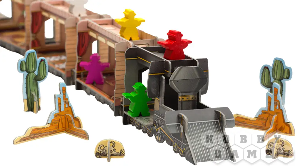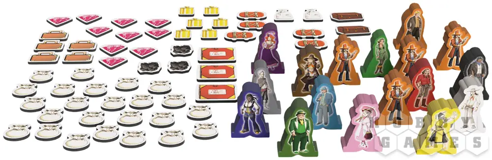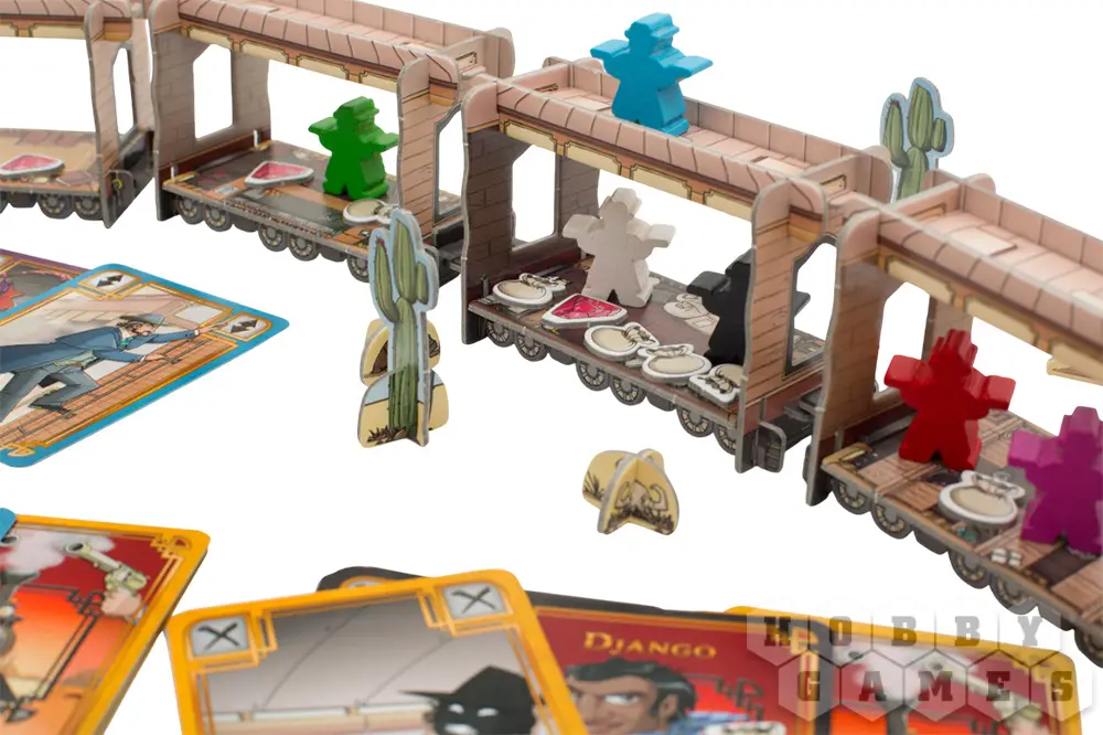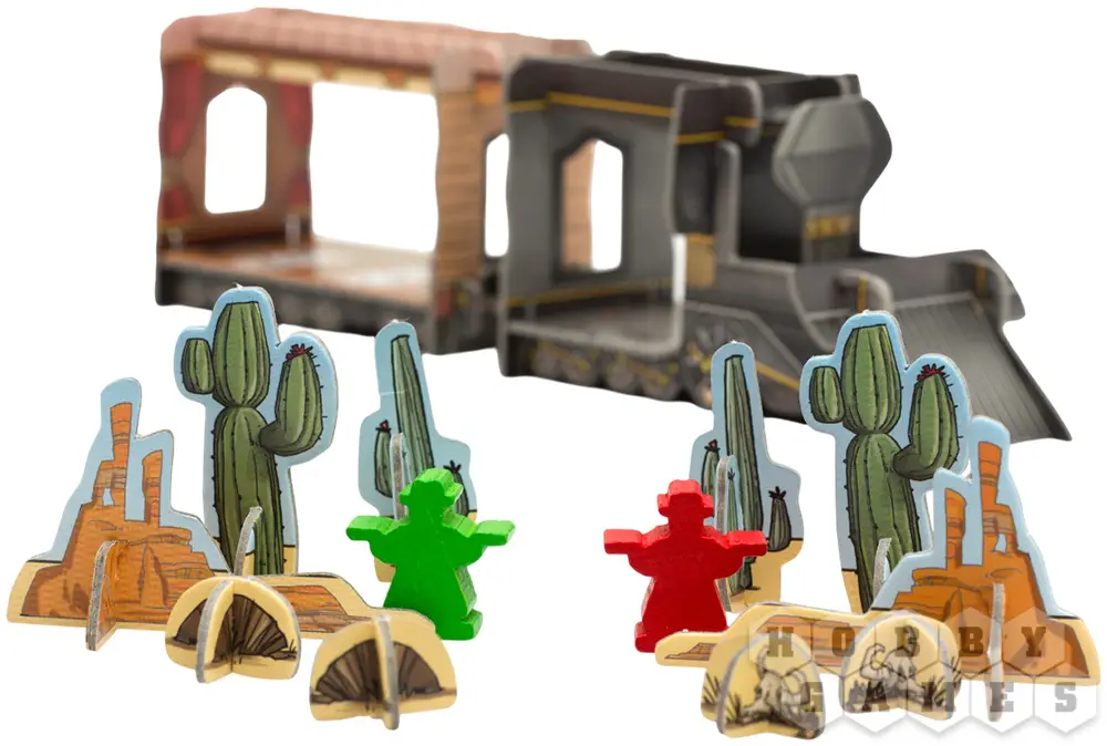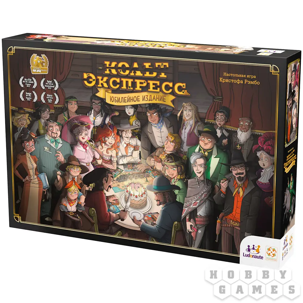 В эту коробку вошли базовая игра и полностью новое дополнение "Юбилей", которое приносит с собой два дополнительных вагона, уникальных персонажей, новые механики и усовершенствованные компоненты. Особое внимание заслуживают улучшенные деревянные жетоны, вагон-цирк, дрезина и фигурки бандитов, знакомых по классической версии и другим дополнениям серии.