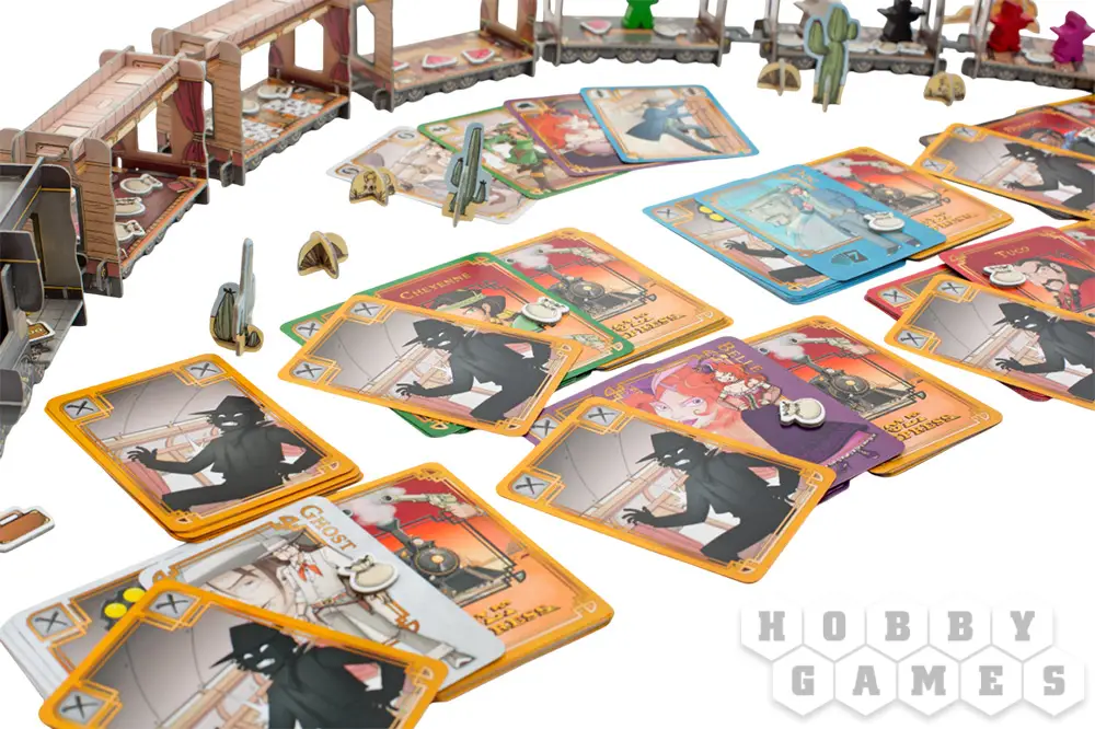 Дополнение "Юбилей" добавляет ещё больше интриги. Вагон-цирк позволяет менять уровень движения, а дрезина – перемещаться скрытно, исчезая под поездом и появляясь в новом месте в начале следующего раунда. Новые персонажи порадуют особыми умениями, которые могут перевернуть ситуацию на поле... ограбления.