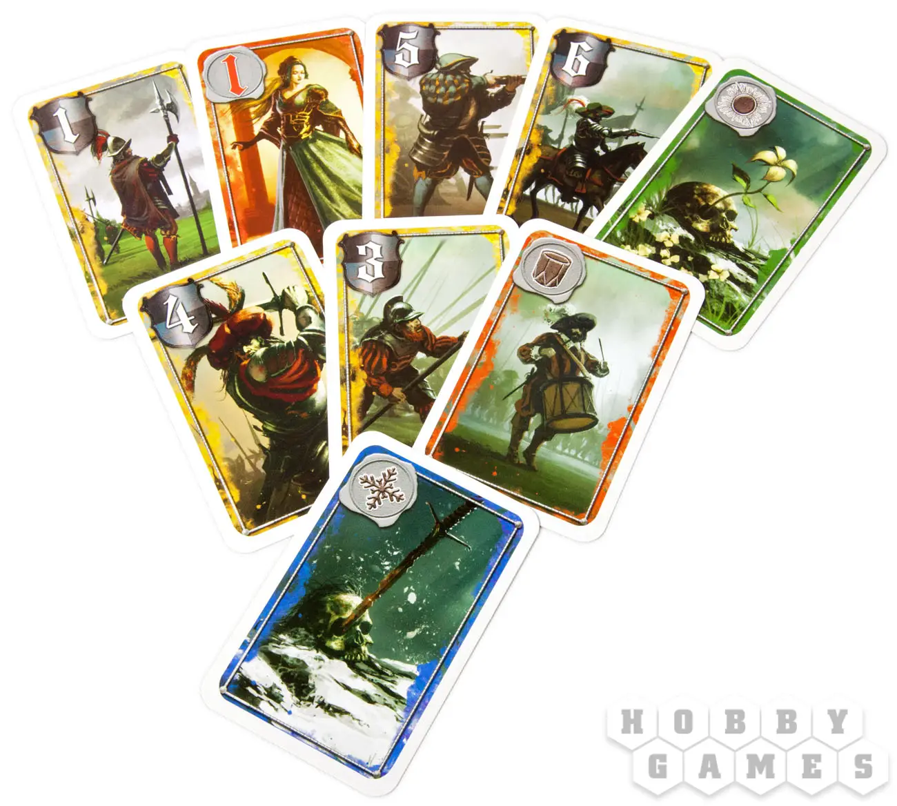 «Кондотьер» - это игра с легкими для усвоения правилами для двух-шести человек. Еще в 1995 году, в год издания, игра удостоилась сразу двух наград! Игрокам предстоит сразиться за контроль над провинциями, управляя отрядами наемников с силой от единицы до десятки. Если правильно оценить выложенные на стол карты, то будет гораздо легче выбрать – спасовать до следующего боя или не отступать ни за что! Элемент сюрприза и азарт приходит с особыми картами войск, которые вводят интриги, предательства и выгодные союзы в игру.