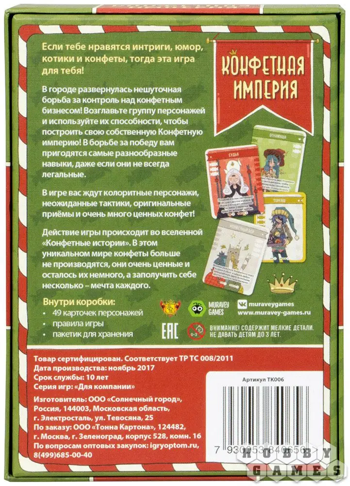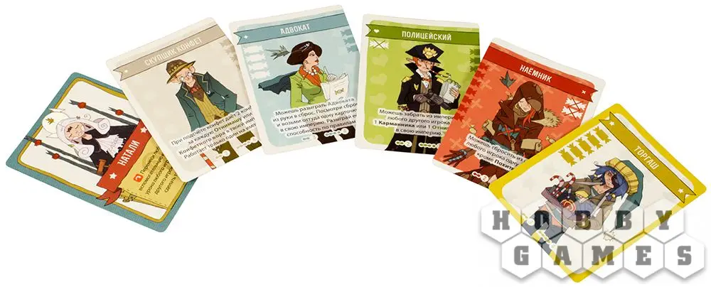 К вашим услугам целый набор интриганов на любой вкус: похитители, отнимаши, конфетные воры, даже полицейские и судьи — в Эмпайр-сити горстью сладкого можно "подмазать" кого угодно! Особый смак — заполучить себе в помощники сладкую парочку карт, тогда в конце игры можно получить вкусный бонус. Впрочем, соперники будут использовать свои карты так, чтобы добавить вам ложку дёгтя и разбить выигрышные комбинации.