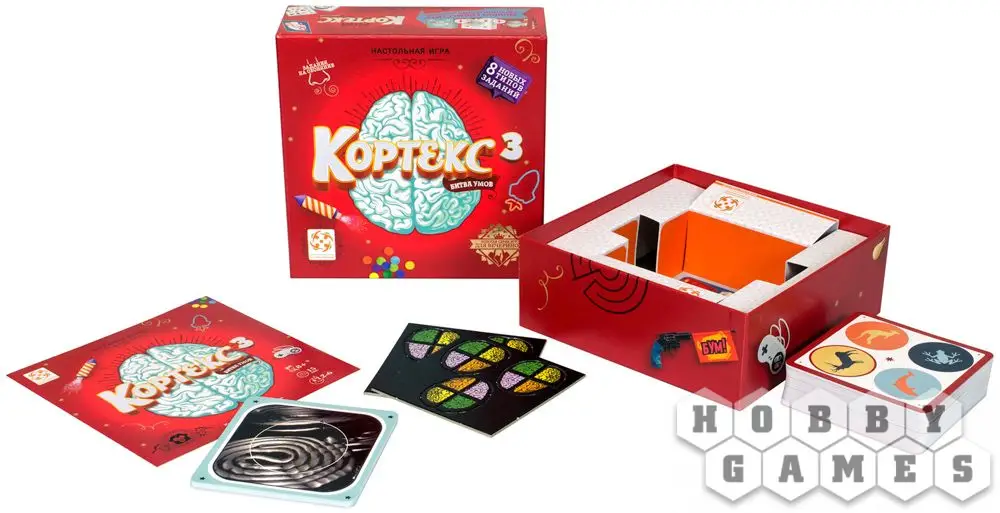 Кортекс – это настольная игра о развитии участков мозга, отвечающих за различные функции человеческого организма: память, реакция, скорость мышления, координация и даже мелкая моторика. Игра проходит при помощи необычных тактильных карт, ход игроков происходит одновременно и побеждает тот, кто первым найдёт правильный ответ.