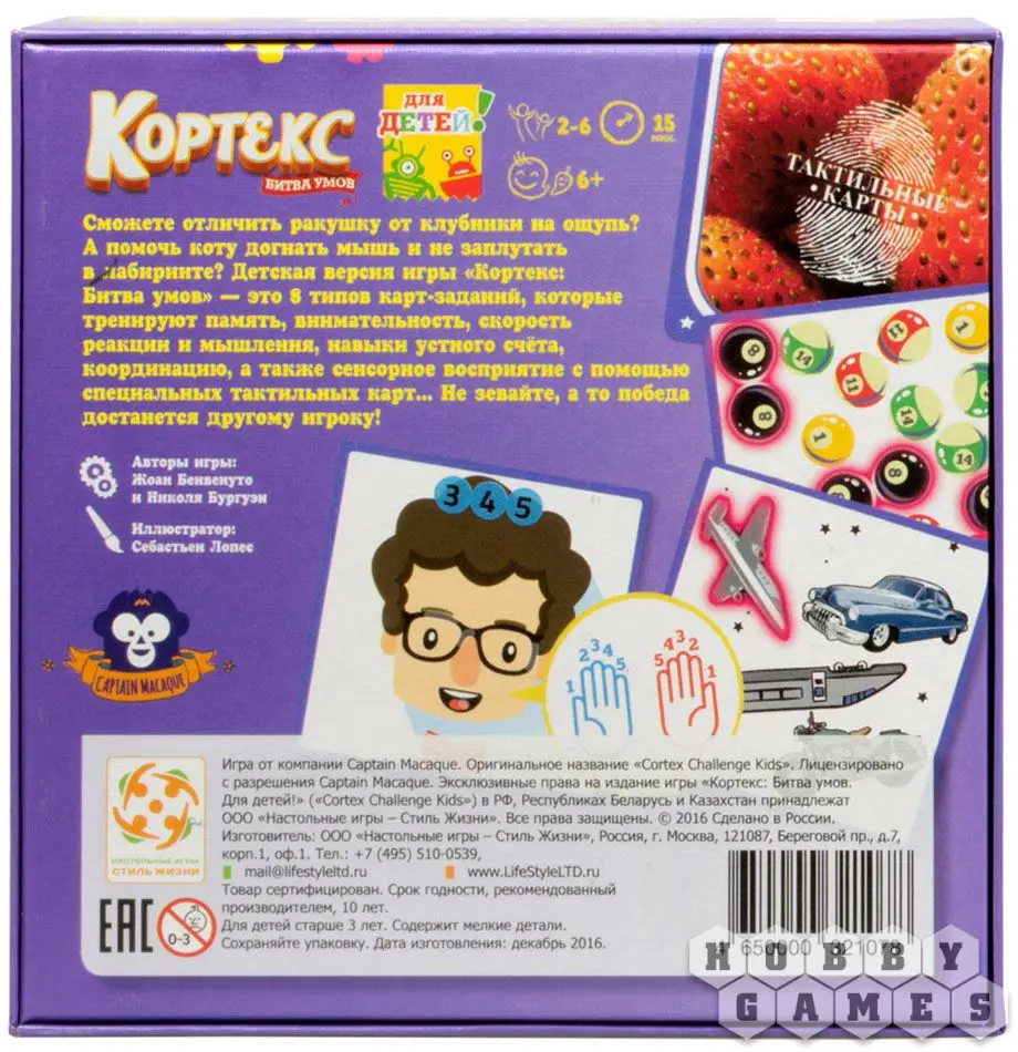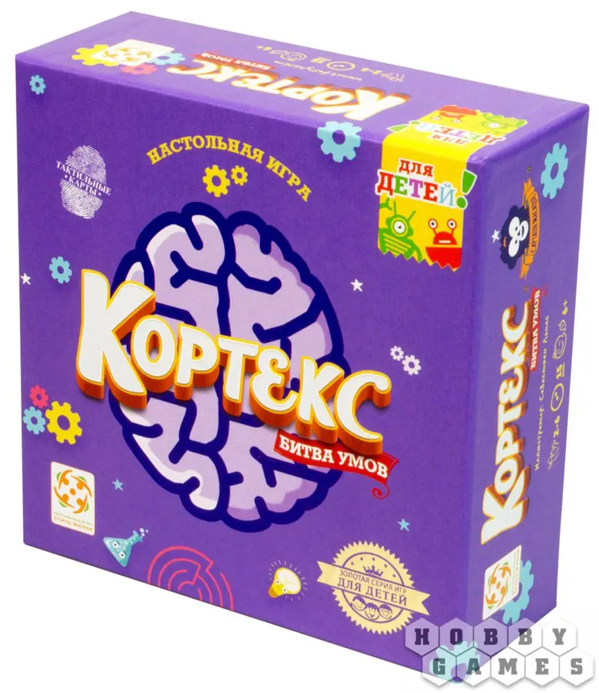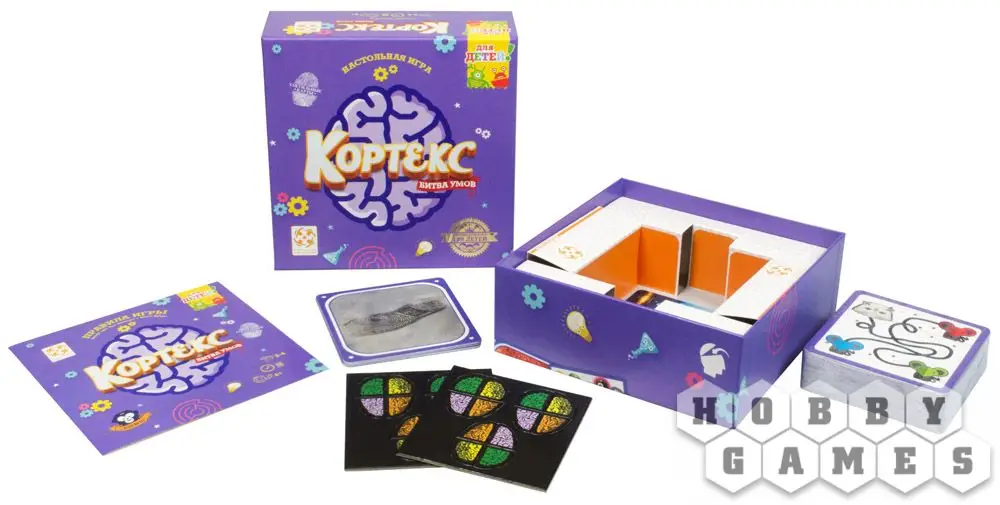 Настольная игра «Кортекс» — это занимательная игра-викторина, которая отлично развивает различные навыки и отделы мозга. Данная версия использует основные механики обычной версии игры, но некоторые карточки специально упрощены, а некоторые задания заменены другими. Игрокам предстоит выполнять задания восьми типов на скорость: