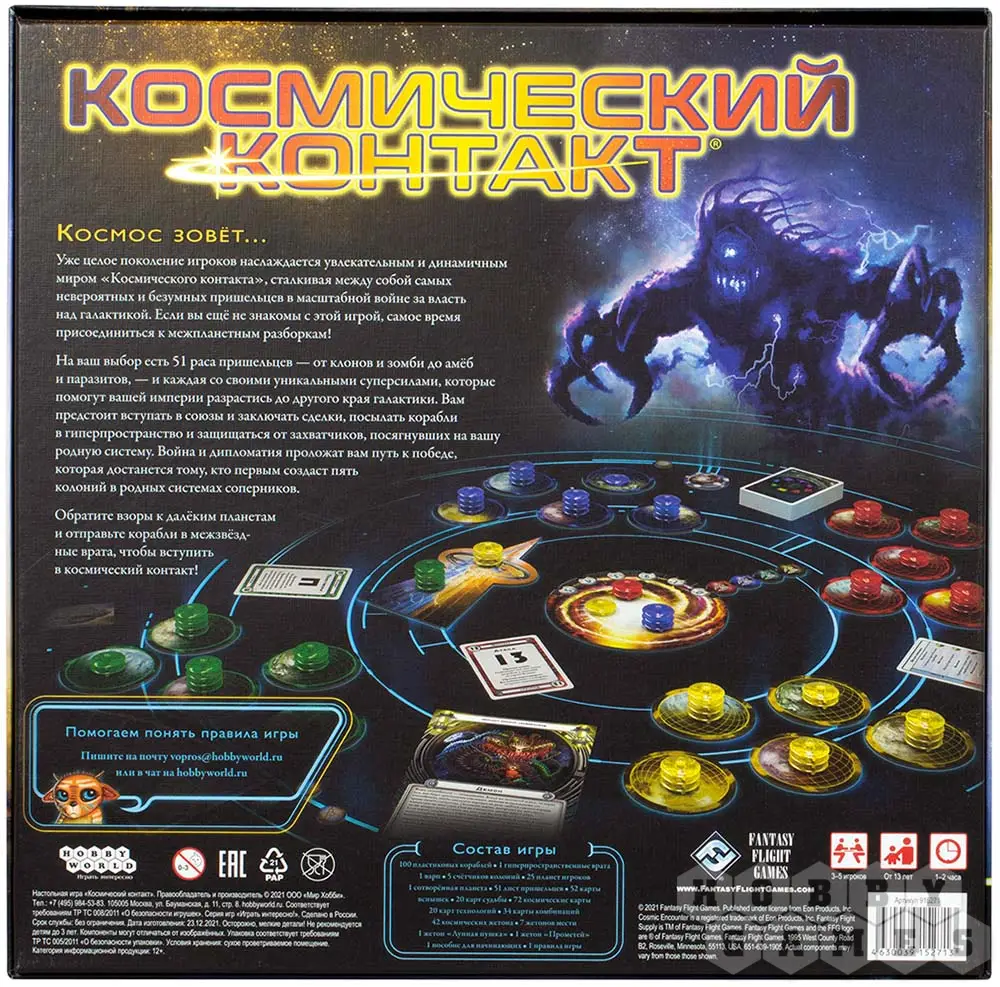 Если при выборе пришельцев игроки прочитают предыстории своих рас и будут подражать их мировоззрению, то проигрывать в "Космический контакт" будет так же весело, как и выигрывать. Вступайте в контакт, ведь космос зовёт!