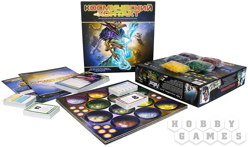 "Космический контакт" – стратегическая игра о межпланетных разборках, которая уже давно обрела культовый статус и завоевала сердца сотен фанатов. Если вы ещё не успели познакомиться с очаровательным и динамичным миром "Космического контакта", то самое время обратить внимание на новое, юбилейное издание легендарной настольной игры и принять участие в уникальном состязании за власть над галактикой!