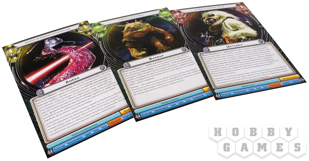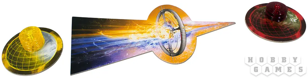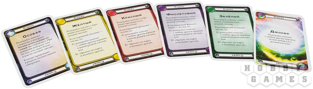 Затем из карт замешиваются колода судьбы и космическая колода. Посреди стола располагается Варп со шкалой для счётчиков далёких колоний. Теперь всё готово для начала первого хода: эта честь может быть отдана, например, самому молодому из участвующих игроков. Совершающий ход игрок именуется Агрессором.