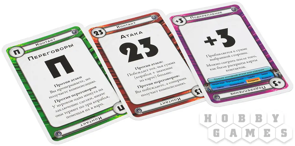 Теперь Агрессор и Защитник могут пригласить не участвующих в текущем контакте игроков к вступлению в союз с ними. В рамках хода допускается союз только с одной из сторон контакта, соответственно, определяющий дивиденды или "урон", в зависимости от исхода противостояния. После того, как все союзы заключены, участники контакта выбирают по одной карте с руки и взакрытую кладут перед собой: этими картами в следующую фазу раскрытия определяется исход противостояния. В зависимости от того, разыграны ли карты Атаки, Переговоров или Метаморфоз, и какие числовые значения эти карты имеют, определяется результат: победит ли Агрессор или Защитник, будет ли заключена успешная сделка, какую компенсацию смогут получить участники конфликта и их союзники.