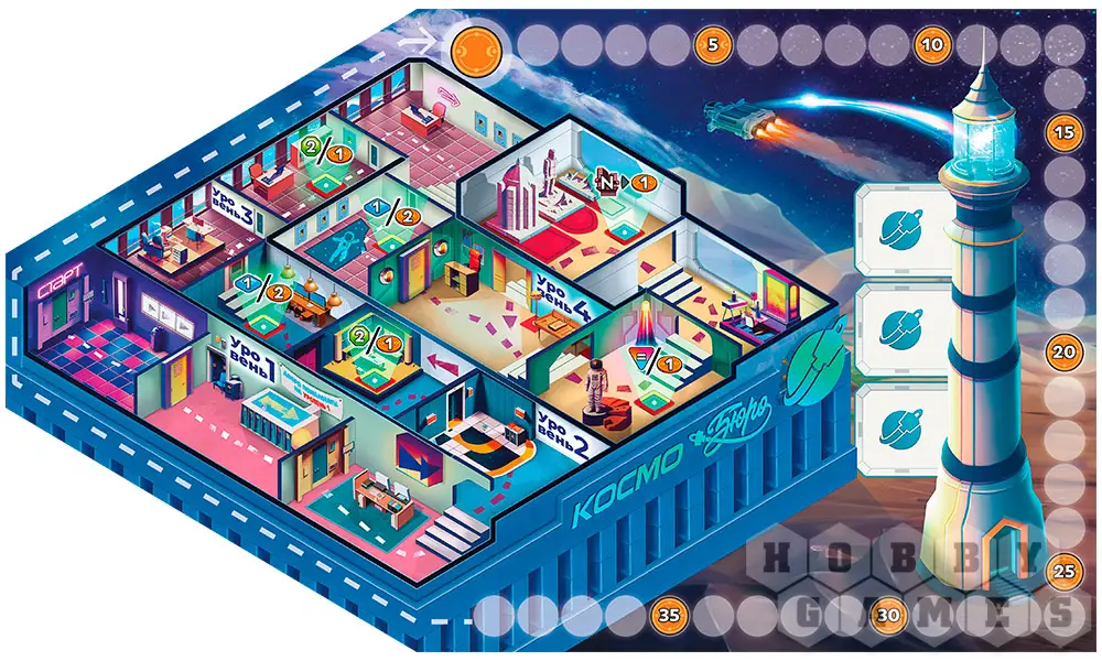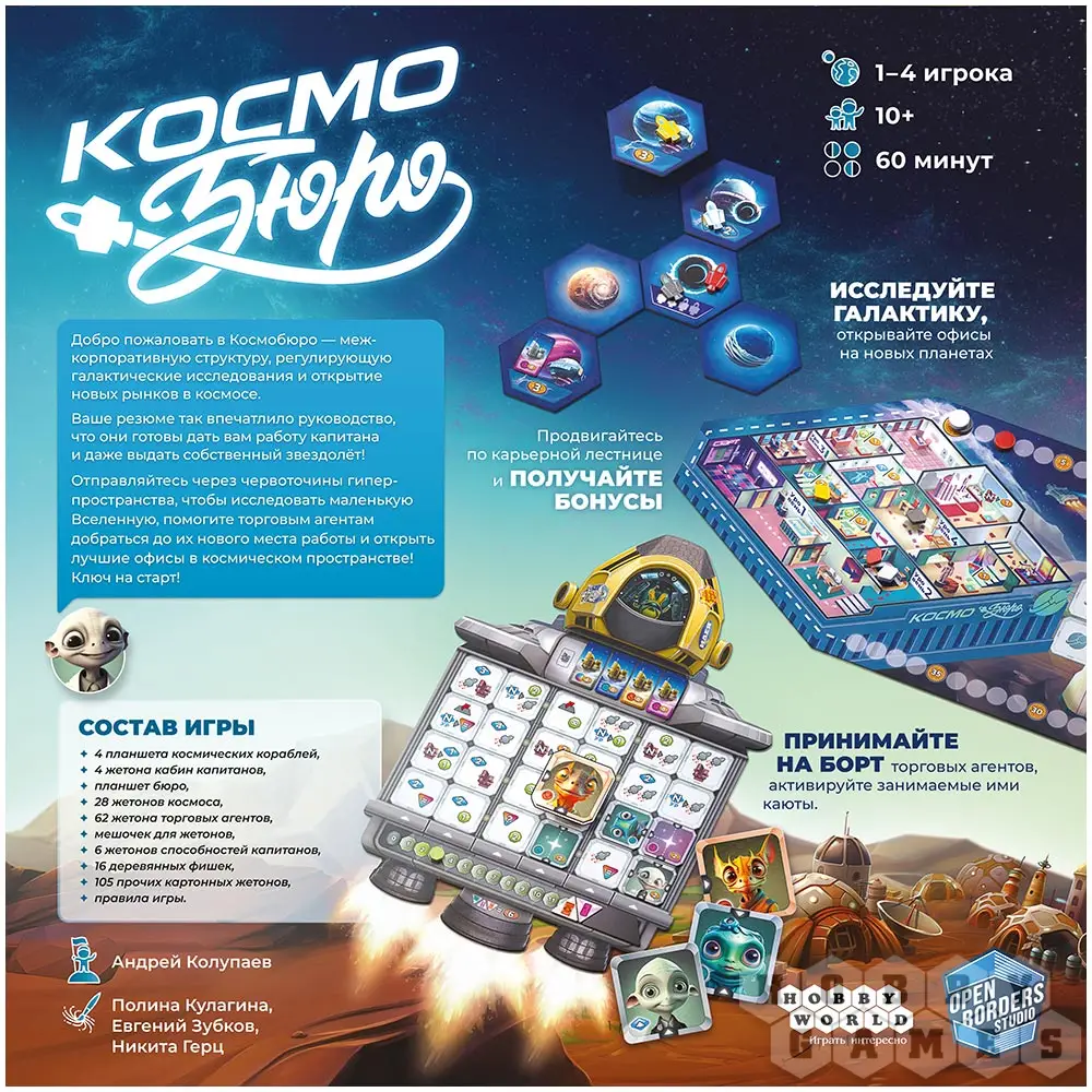 "Космобюро" – это увлекательная настольная игра, действие которой разворачивается в космическом пространстве. Вам предстоит взять на себя роль капитана звездолёта и отправиться в захватывающее приключение по гиперпространственным червоточинам. Вашей главной целью станет сбор максимального количества кредитов, и, возможно, получение грандиозного вознаграждения от Космобюро!