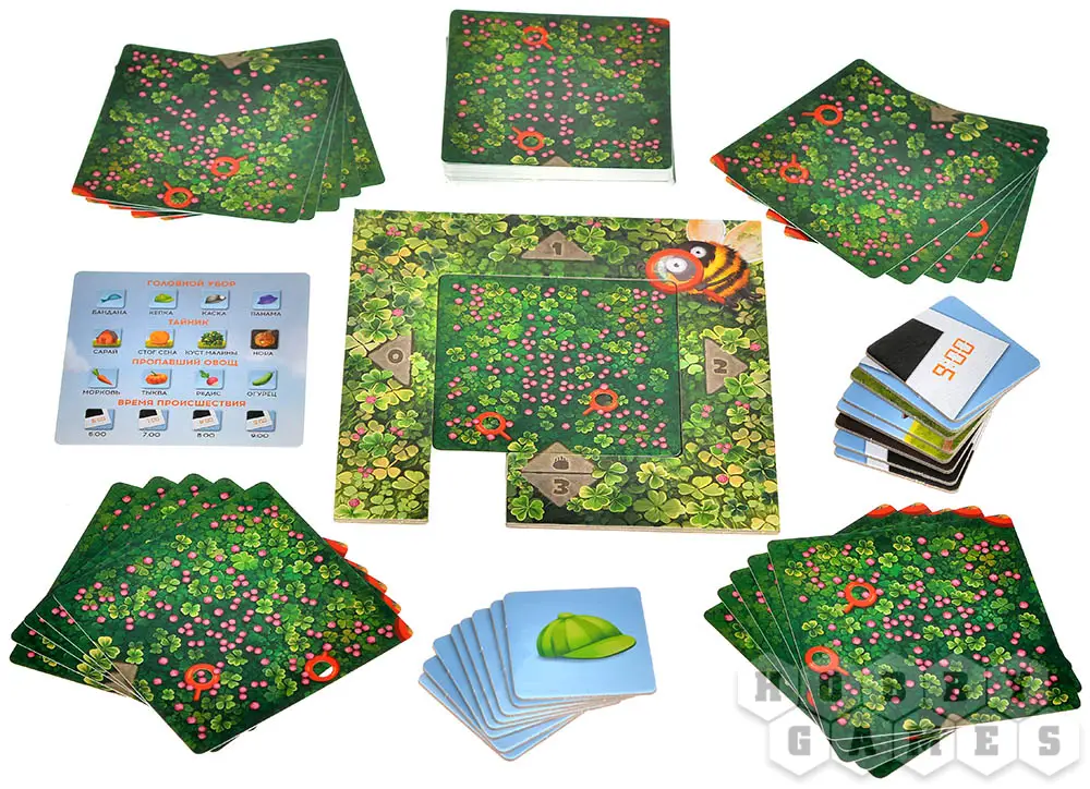 Сначала приготовьтесь к расследованию! Разложите перед собой яркое поле-огород, а вокруг разместите "улики": перевернутые карточки нор, колоду загадочных овощей, подозрительных инструментов и времени суток. Выберите самого внимательного игрока на роль шмеля-следопыта. Его миссия – тайно вытянуть по одной карточке из каждой колоды и записать эту секретную комбинацию на своей карточке. Так рождается загадка, которую предстоит разгадать сыщикам-садоводам!