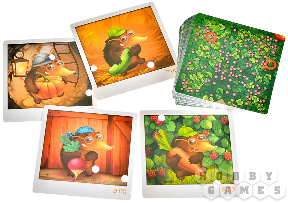 После каждого хода сыщика шмель может проявить "коварство крота" – передвинуть карточку овоща в соседнюю норку! Это значит, что даже если вы уже где-то видели морковку, на следующем ходу её там может не оказаться.