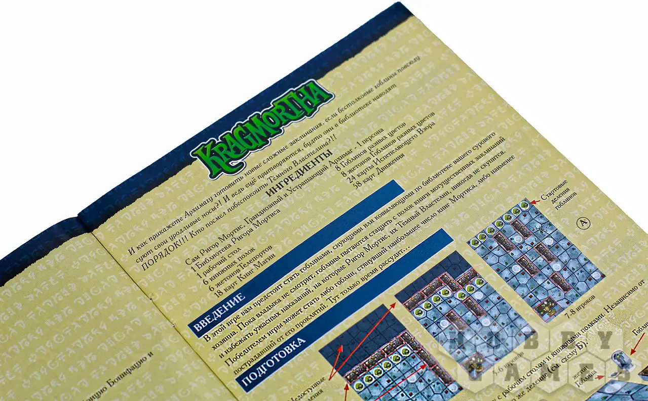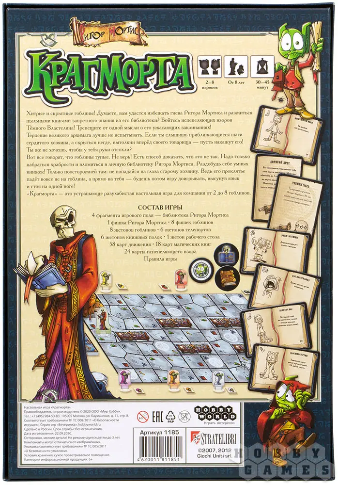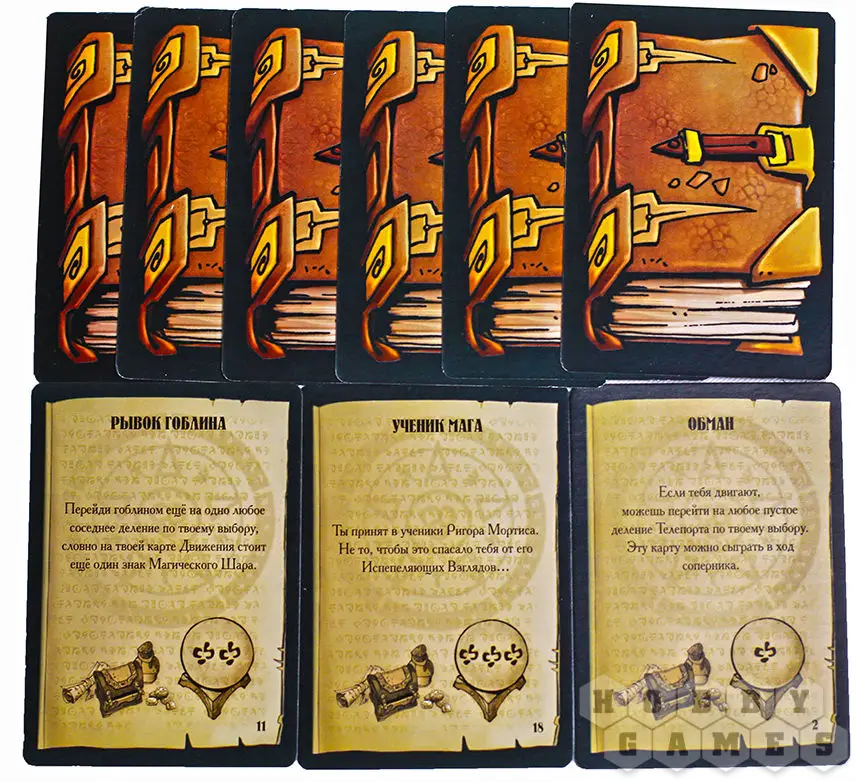 Но изюминка "Крагморт" не в этом, а в Испепеляющих Взорах. Их в избытке получат гоблины от своего властелина. Карточки содержат разные забавные наказания: до конца настольной игры говорить исключительно сквозь зубы, или держать карточку с наказанием подбородком, или все время стоять на одной ноге – все наказания будут в этом же духе. Можно представить, какое веселье вас ожидает!