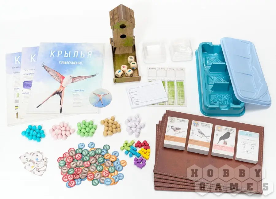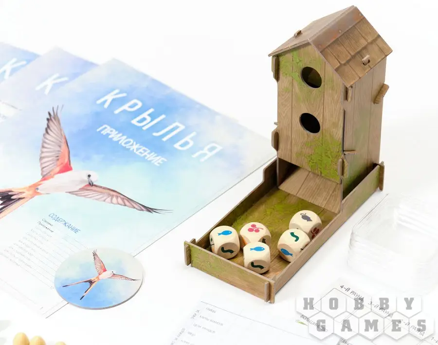 Как говорится, книгу судят по обложке. Настольная игра «Крылья» готова порадовать вас не только визуальным оформлением коробки, но и интересными, красивыми компонентами. Например, башня для кубиков оформлена в стиле старого, видавшего виды скворечника, поросшего мхом и излучающим уютную старину.