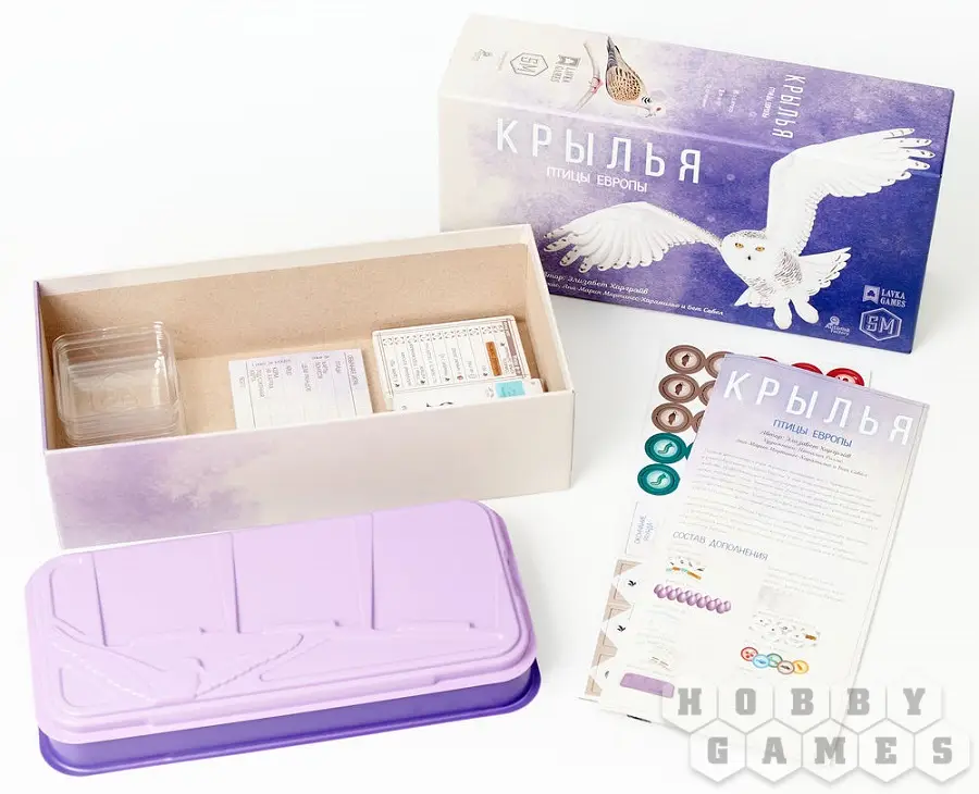 Первое полноценное дополнение для настольной игры "Крылья". Если в оригинальной игре вы могли встретить только обитателей Северной Америки, то сейчас игроки познакомятся с прекрасными видами, обитающими в Европе. Настало время взглянуть на тех пташек, кто к нам ближе - европейских птиц, которых вы можете встретить в любом городском парке.