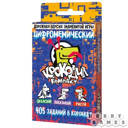 Настольная игра "Крокодил ЦифроМемический" – это тематическая интерпретация знаменитой словесной игры для компании и вечеринок. Первоначальные правила звучали так: загадываете слово, а ваш друг пытается объяснить его всем жестами и сценками без слов. Время течёт и игры меняются, вот "Крокодил" научился выходить в интернет, там он начитался и насмотрелся мемов и теперь готов вас удивить. Вам предстоит рисовать, показывать жестами и объяснять словами популярные шутки, рождённые в интернете.